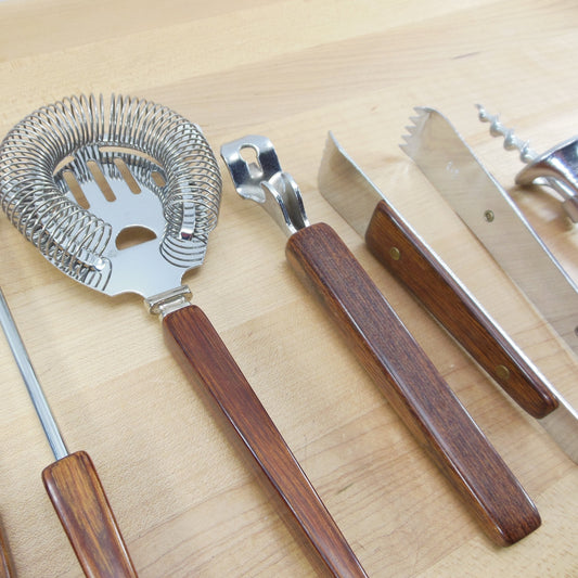 Unbranded USA Stainless Chrome Wood Handle Bar Ware Utensil Set