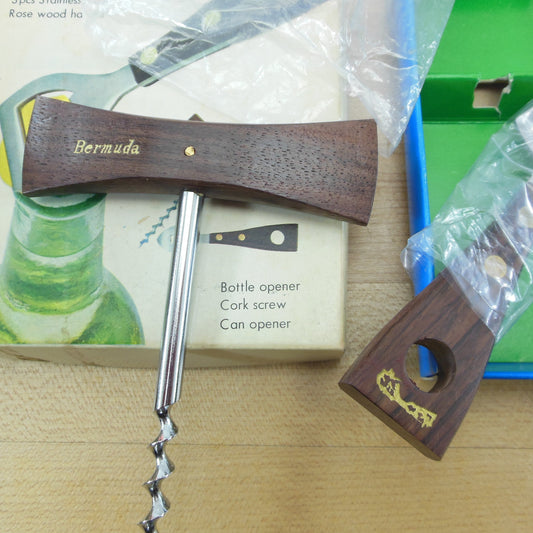 Rosewood Stainless 1960-70's Bar Set Openers Corkscrew Bermuda Souvenir
