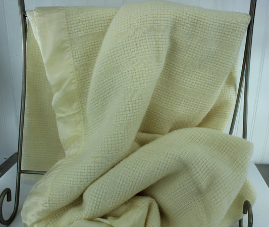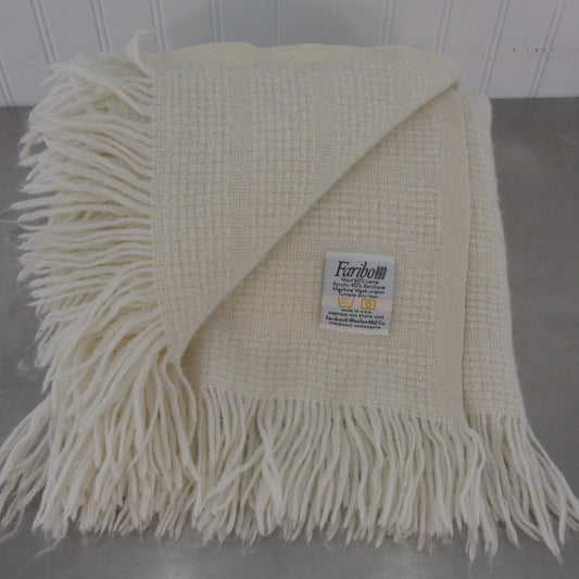 Faribo Ivory Washable Wool Acrylic Blend Blanket Basketweave Made USA Faribault MN