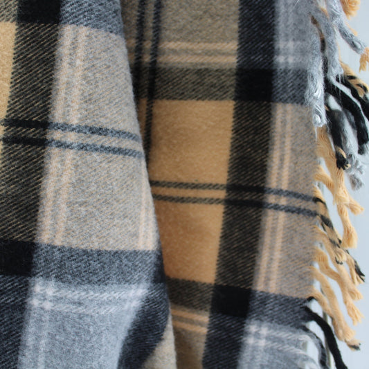 Faribo Acrylic Throw Caramel Grey Black White Plaid - 53" X 40" +3" Fringe