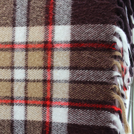 Faribo Acrylic Throw Blanket Brown White Red Plaid 53" X 56"