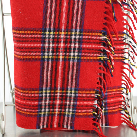 Faribo Classic Wool Throw Blanket Red Green Yellow Plaid 54" by 52" USA