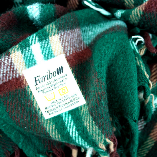 Our inventory of pre-owned used vintage wool & acrylic Faribo blankets, bedding and throws, scarves, apparel.