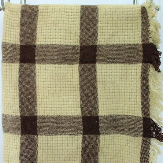 Faribo Wool Throw - Ivory & Brown Big Checks Basketweave - Special
