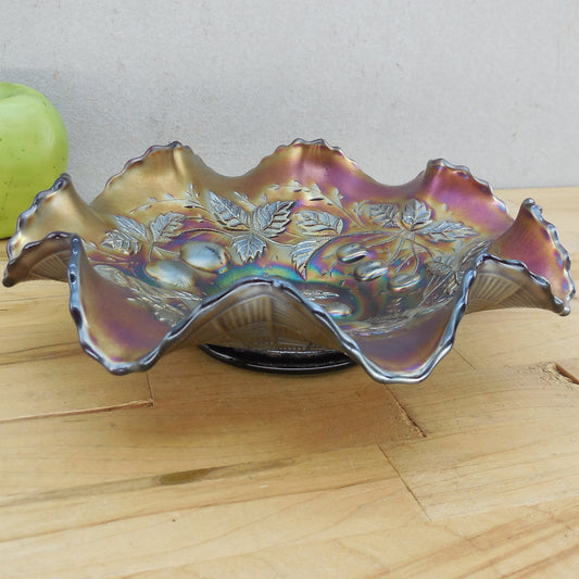 Northwood Amethyst Carnival Glass Three Fruits Cherries Dish Bowl
