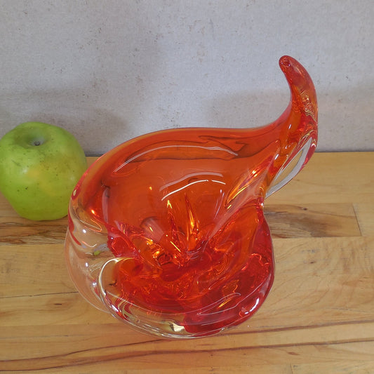 Chalet Canada Art Glass Cigar Ashtray Persimmon Orange Handle MCM
