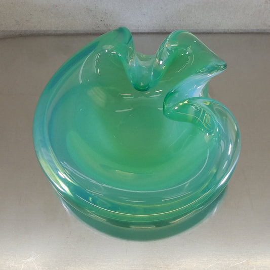 Murano Glass Unsigned Opaline Fade Blue Green Folded Bowl 7"