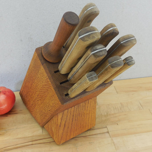 Cutco USA 10 Slot Kitchen Steak Knife Oak Wood Block