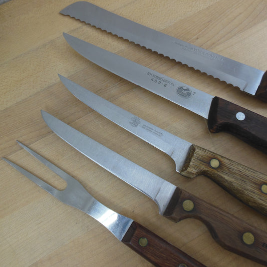 Stainless Wood Kitchen Knives Fork 5 Lot - Farberware Forschner Golden Eagle Yorktowne
