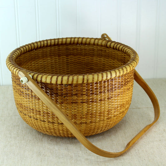 Nantucket Large Open Basket Signed Fisher Penney Coin Variegated Cane