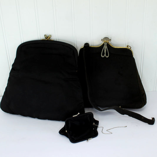 Pair Vintage Black Formal Purse Handbag Repurpose DIY Marcasite RS