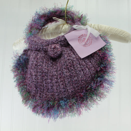 Rosebud Creation Hand Made Crocheted Acrylic Purse Eyelash Fringe "Lavender Fluff"