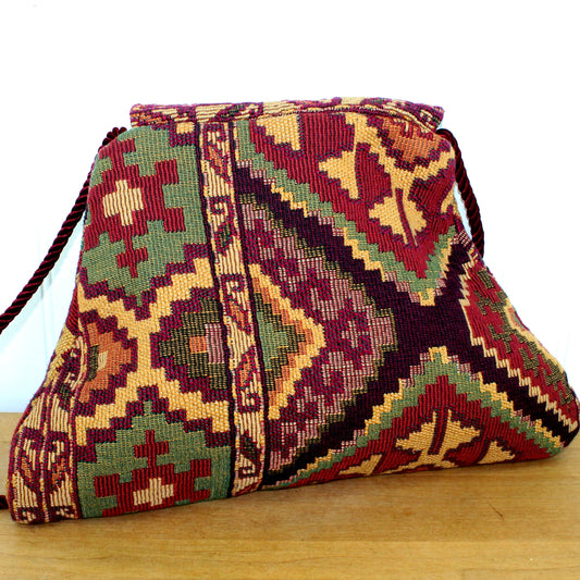 Unique Hand Made Purse Burgundy Velvet Tapestry Matching Cord Shoulder Strap