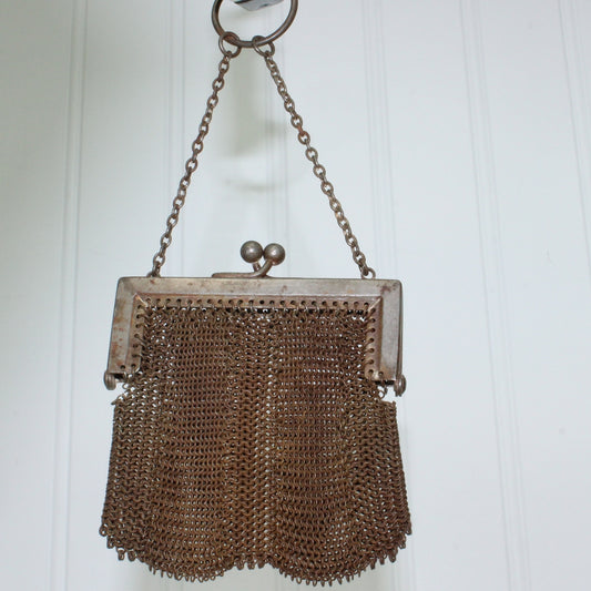 Antique Steel Mesh Chatelaine Finger Purse Rectangular Frame
