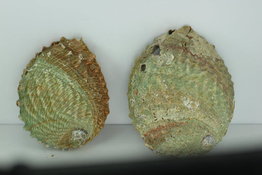 Green Abalone Shells 2 Rainbow Iridescent 5 1/2" 4 3/4" Shell Art Collectibles