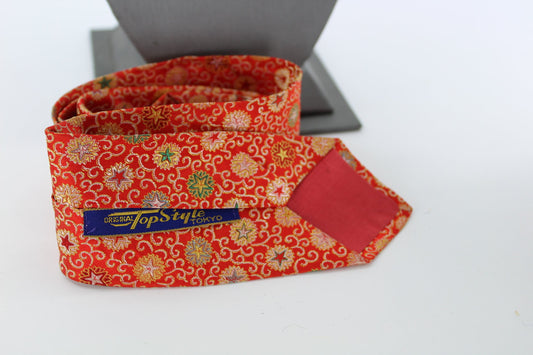 TopStyle Silk Damask Necktie Skinny Red Starburst 50" X 2 1/4"