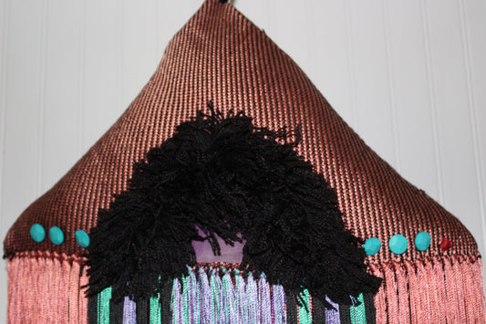 Wall Art Unusual Decor Piece OOAK Woven Bright Long Fringe Bohemian & Chic