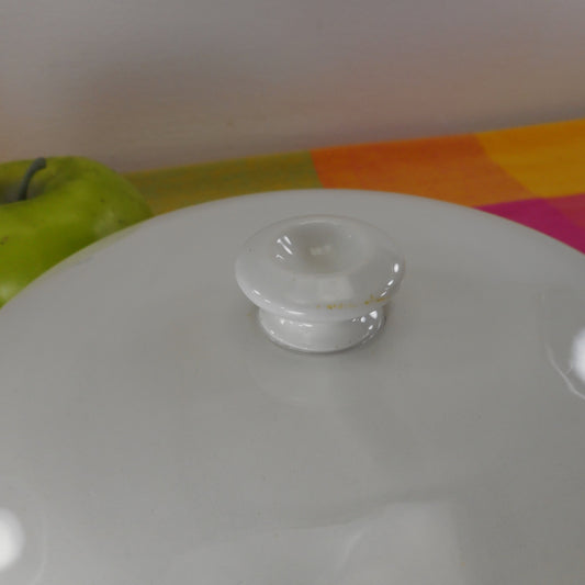 Arabia Finland All White Lidded Bowl Pot with Stubby Handle