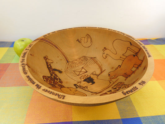 D.W. Delach Pyrography Maple Wood Dough Bowl - Genesis 9:16 Noah's Ark