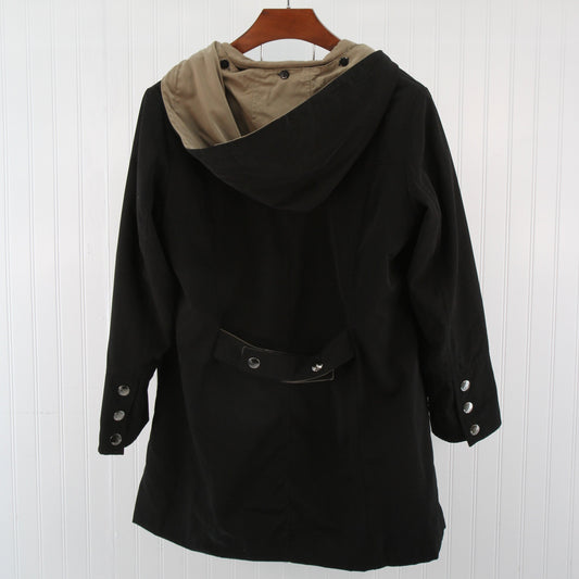 Nautica Womens Jacket Black & Tan Zippered Lining Removable Hood XL