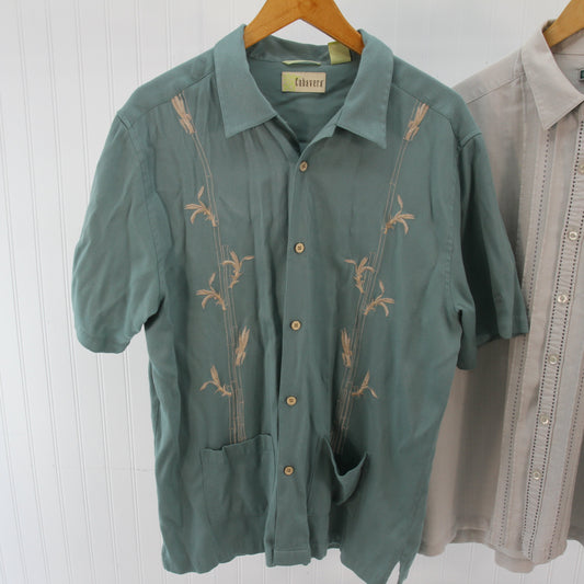 Cubavera Two Cuban Shirts Bundle Green Gray Large