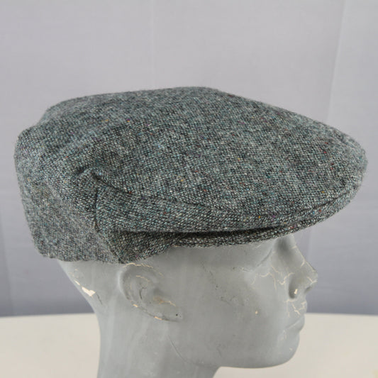 John Hanley Blue/Green/Gray Wool Tweed Flat Cap Ireland 7 1/2 61mm