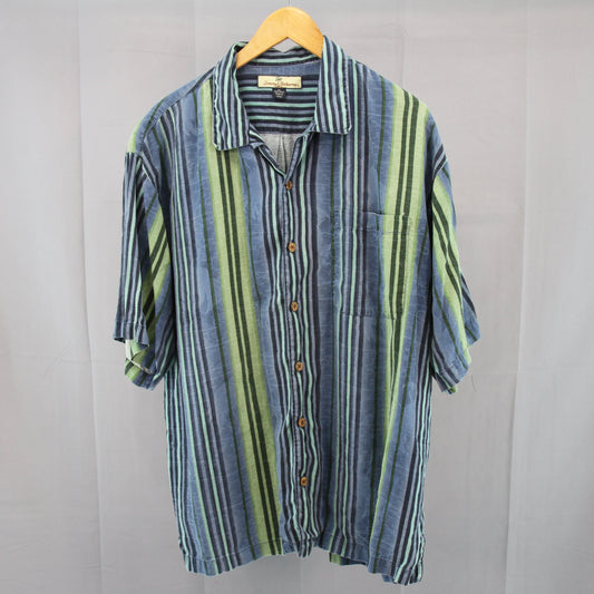 Tommy Bahamas 100% Silk Hawaiian Style Blue Green Striped Shirt XL