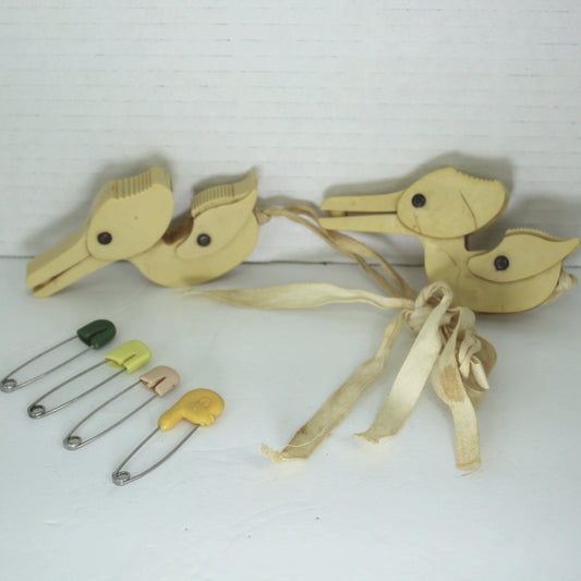 Vintage Baby Items Stork Duck Blanket Diaper Bib Clips Plastic Diaper Pins