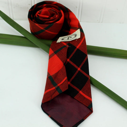 Berman Bach Ltd Milwaukee Necktie Wool Cotton Blend Red Black Plaid 56" X 3 1/4"