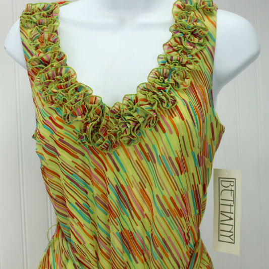 Bethany Dress New With Tags Size 6P Lime Lilac Flounced Skirt Ruffle Neck