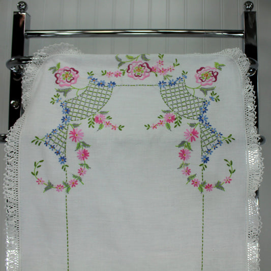 Lace Embroidery Table Runner Shawl White Heavy Cotton Pastel Hand Work