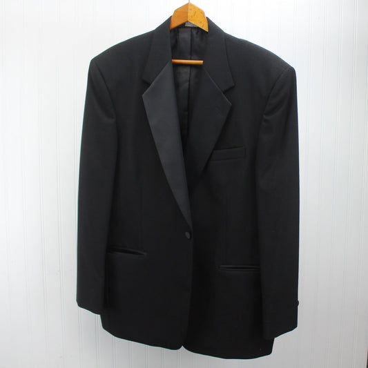 Perry Ellis Evening Suit Formal Men's Black Wool 3 Piece Satin Lapel Trim Print Vest 44R