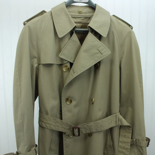 Brooks Bros Vtg Mens Trench Coat Poplin Wool Zip Lining Dupont Zepel Great Detail 38 Reg