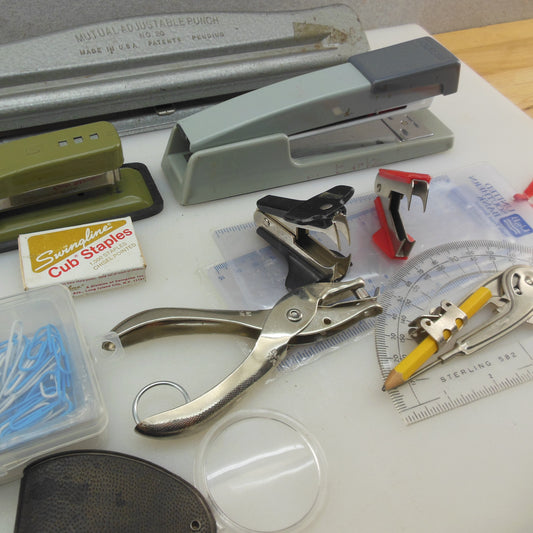 14 Pc. Lot Office Supplies Cub Swingline Bosch Staplers Paper Punches Etc.