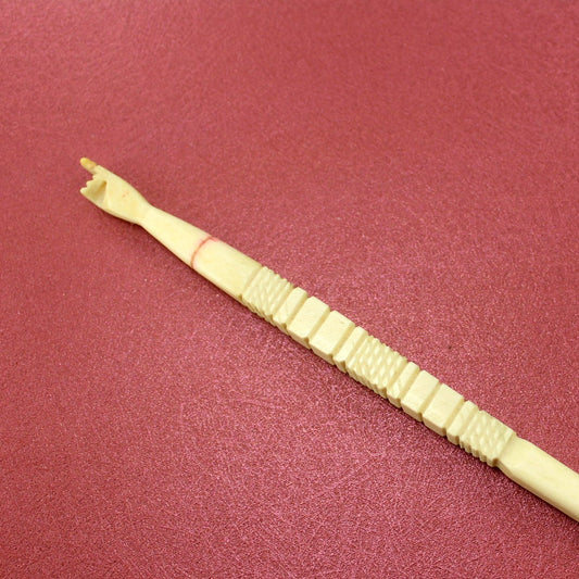 Exquisite Collectible Antique Bone Ivory Crochet Hook Carved Hand Top Decorated Handle