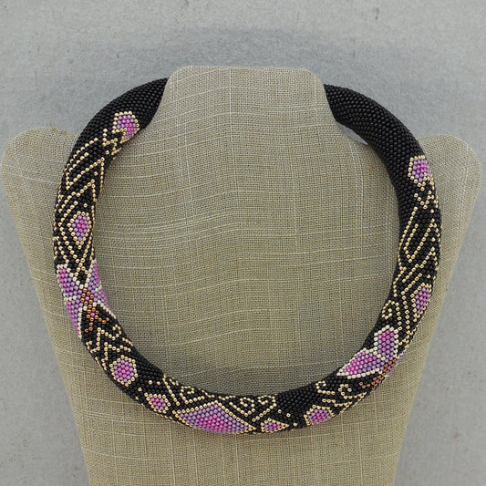 Estate Pair Crochet Sead Bead Rope Necklaces Chokers Magnetic Pink Black
