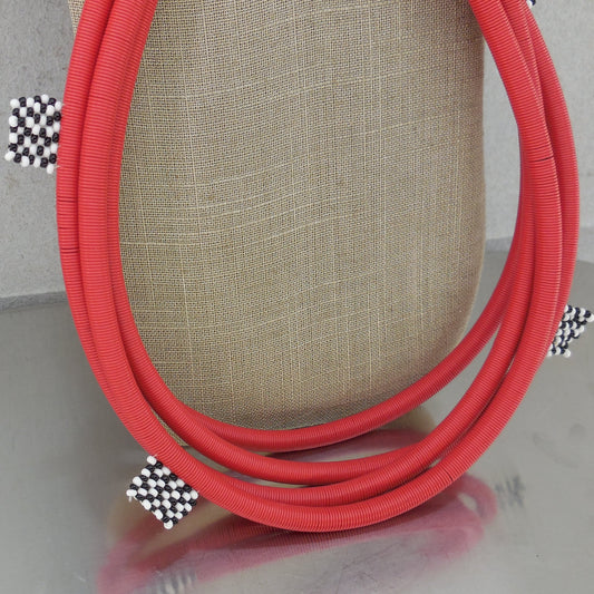 African Style 4 Strand Red Telephone Wire Necklace Black White Beads