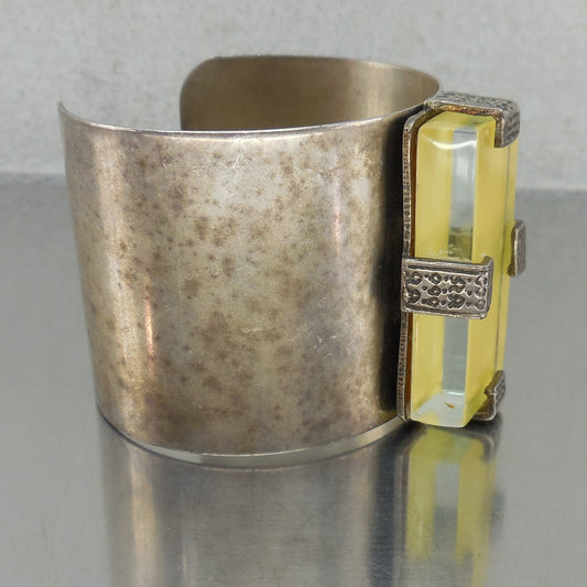 Tribal Cuff Bracelet Yellow Backed Glass Rectangle Stone