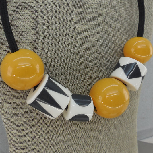 Officine Gualandi Italy Totem Chunky Ceramic Bead Necklace Yellow Black White