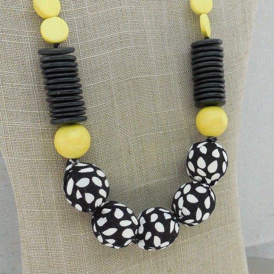 Sylca Designs Ball Disc Bead Necklace Black Yellow White