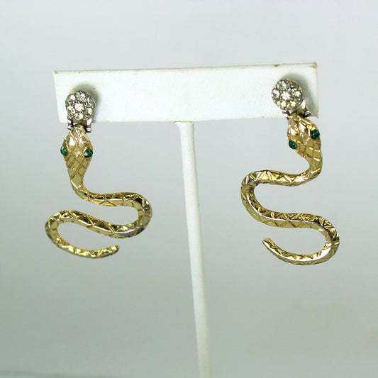 Serpent Snake Post Earrings Costume Glitzy Rhinestones Egyptian Revival