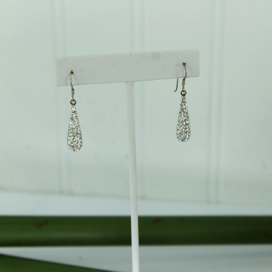 Vintage Sparkling Crystal Pave Earrings 925 Teardrop Shape Shepherd Hook