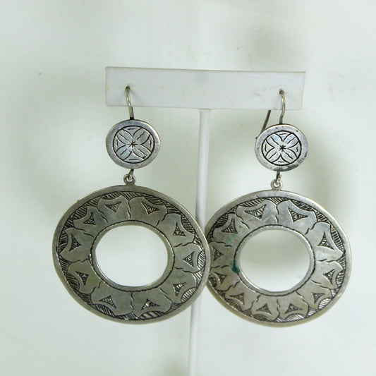 Vintage African Tribal Earrings Dangle Metal Large Etched Circles Handsome