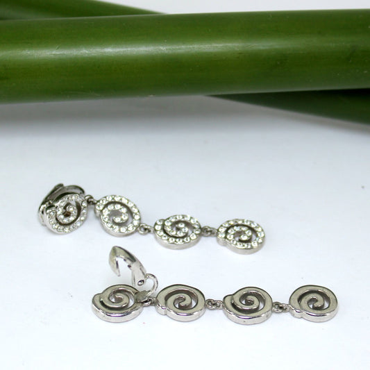 Stunning Long Pave Crystal Swirl Earrings Fiery Shine Clips
