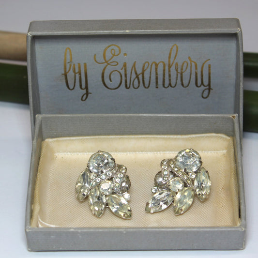 Eisenberg Ice Rhinestone Clip Earrings Eissenbery Original Prong Fur Clip Estate