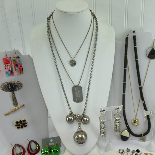 Jewelry Lot 566 - Twenty (20) Pieces Unmarked Earrings Necklaces Pins Reuse Repurpose