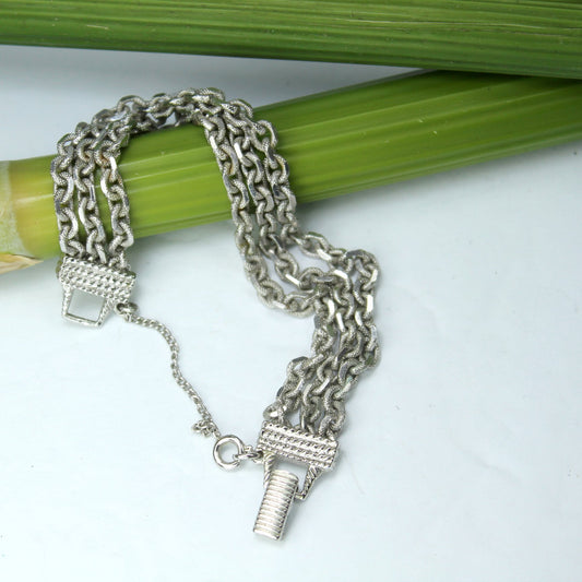 Signed Goldette N.Y. Silver one Multi Chain Vintage Bracelet Safety Chain