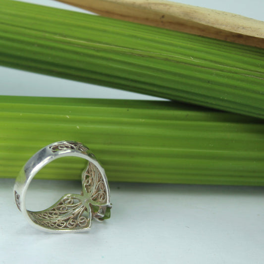 Artisan Sterling Filigree Large Oval Peridot Ring Butterfly Shape