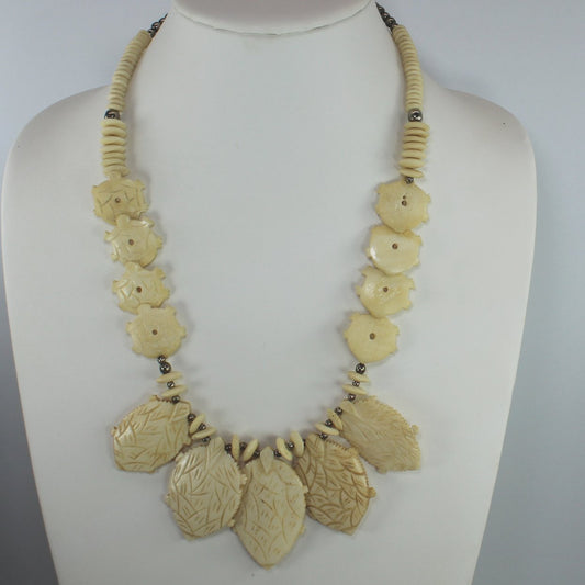 Carved Bone Turtles Necklace Silver Beads Africa Wear DIY Beads
