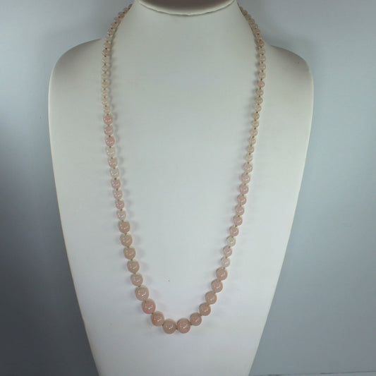 Elegant Natural Rose Quartz Necklace Egypt Round Luminous Knotted 30"